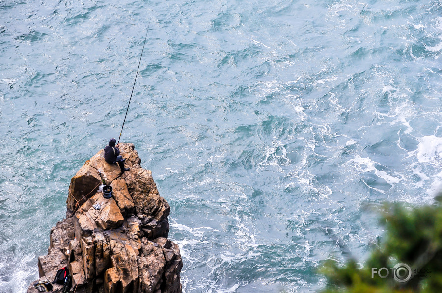 Diemžēl neesmu fotošopa speciālists. Fotogrāfējot šo kadru, diezgan centos izvairīties no tā zaļā krūma, bet nu nekādīgi neizdevās. Pats atrados uz vienas klints, krūms mazliet tālāk, priekšā uz citas un makšķernieks uz vēl nākamās. Paldies par komentāru! ;)